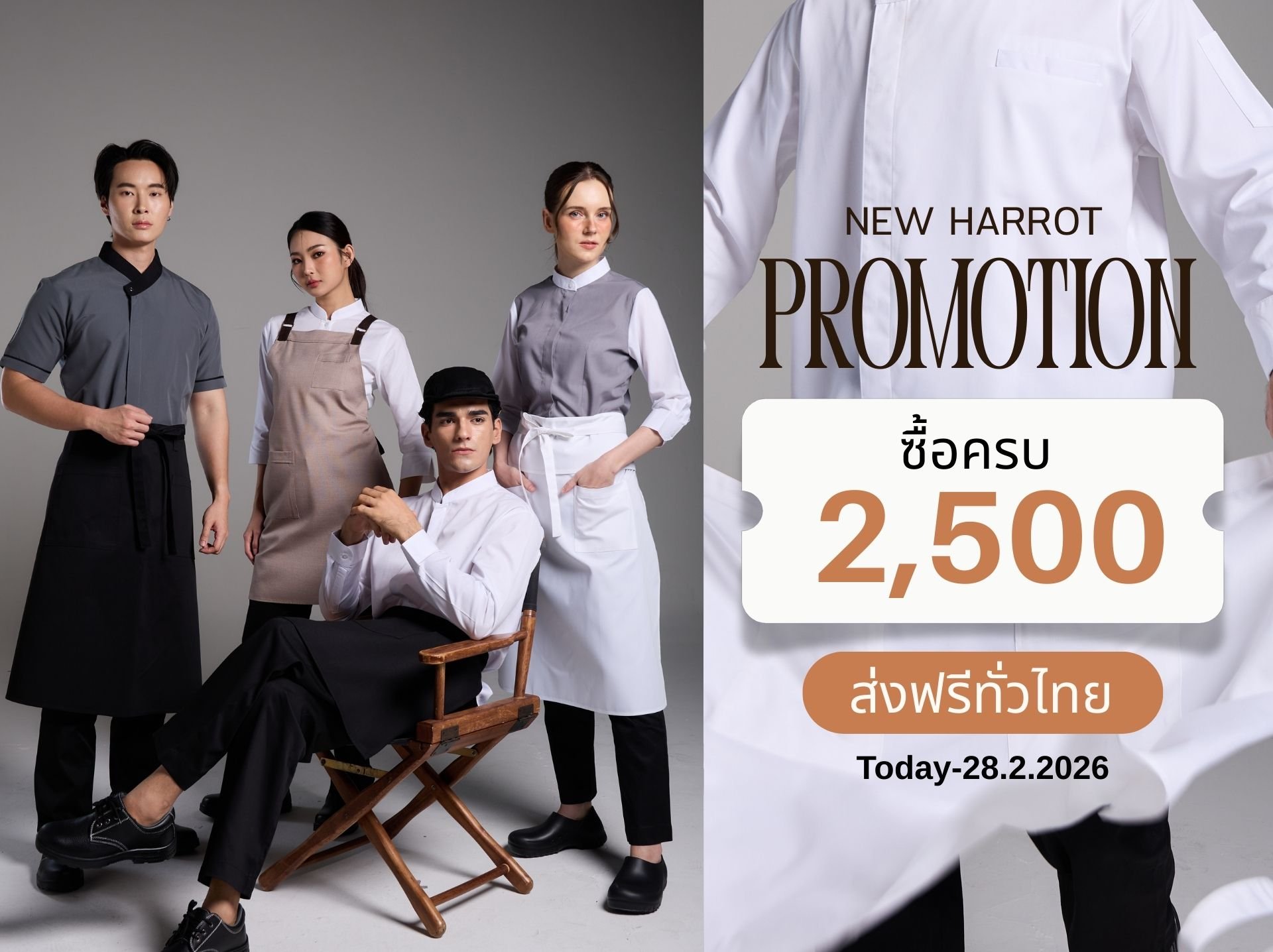 Harrot ยูนิฟอร์มสำเร็จรูป คุณภาพเยี่ยม เสื้อกุ๊ก ผ้ากันเปื้อน เสื้อเสิร์ฟ