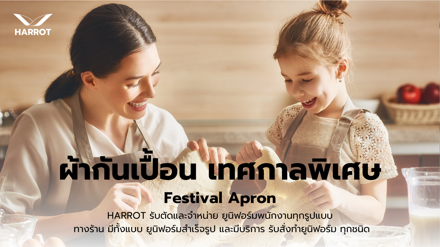 ผ้ากันเปื้อนเทศกาลพิเศษออกแบบมาเพื่อเพิ่มความสนุกและสีสันให้กับการทำอาหารในช่วงวันหยุดและเทศกาลสำคัญ ด้วยลวดลายและสีสันที่เข้ากับบรรยากาศเฉลิมฉลอง ทำให้คุณและครอบครัวสามารถเพลิดเพลินกับการเตรียมอาหารได้มากยิ่งขึ้น นอกจากนี้ยังเป็นของขวัญที่น่ารักและใช้งานได้จริงสำหรับคนที่รักการทำอาหาร