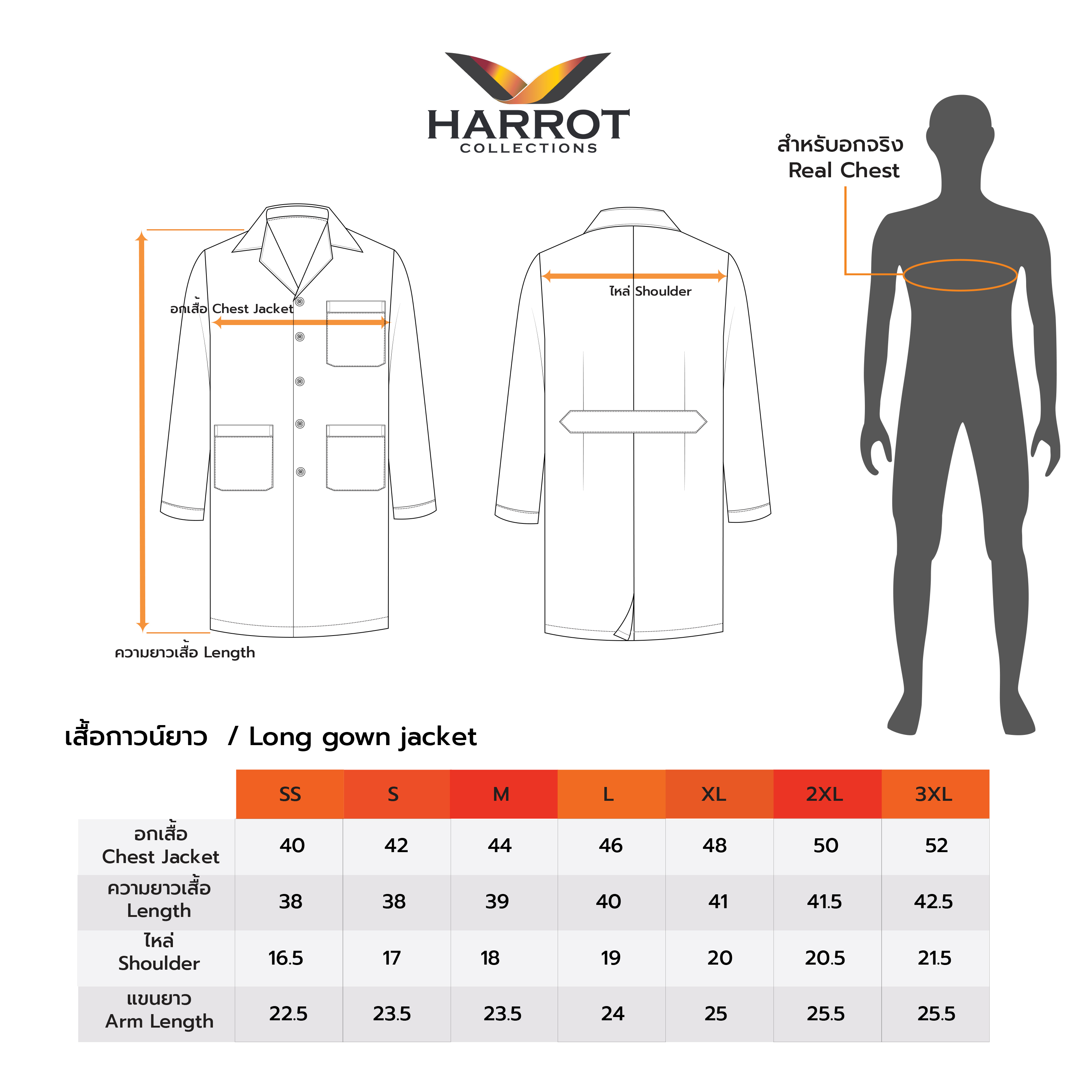 ขนาดไซซ์ Size SS – XL รองรับหลากหลายสรีระ และสามารถสั่งผลิตไซซ์พิเศษได้ตามความต้องการ